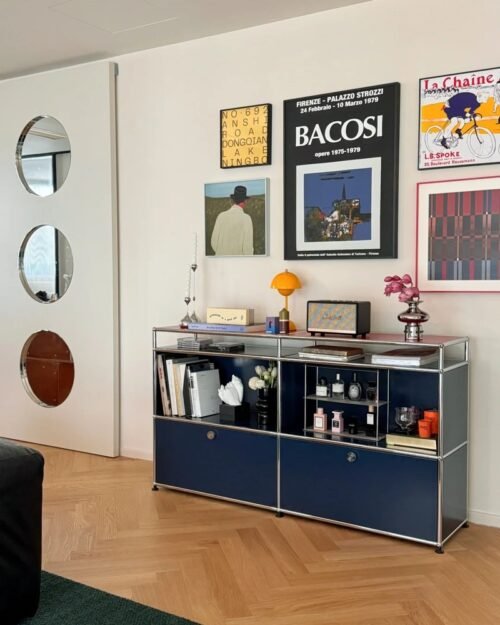 【Assemy】Navy Double-layer inverted-door fixed-stand modular storage cabinet