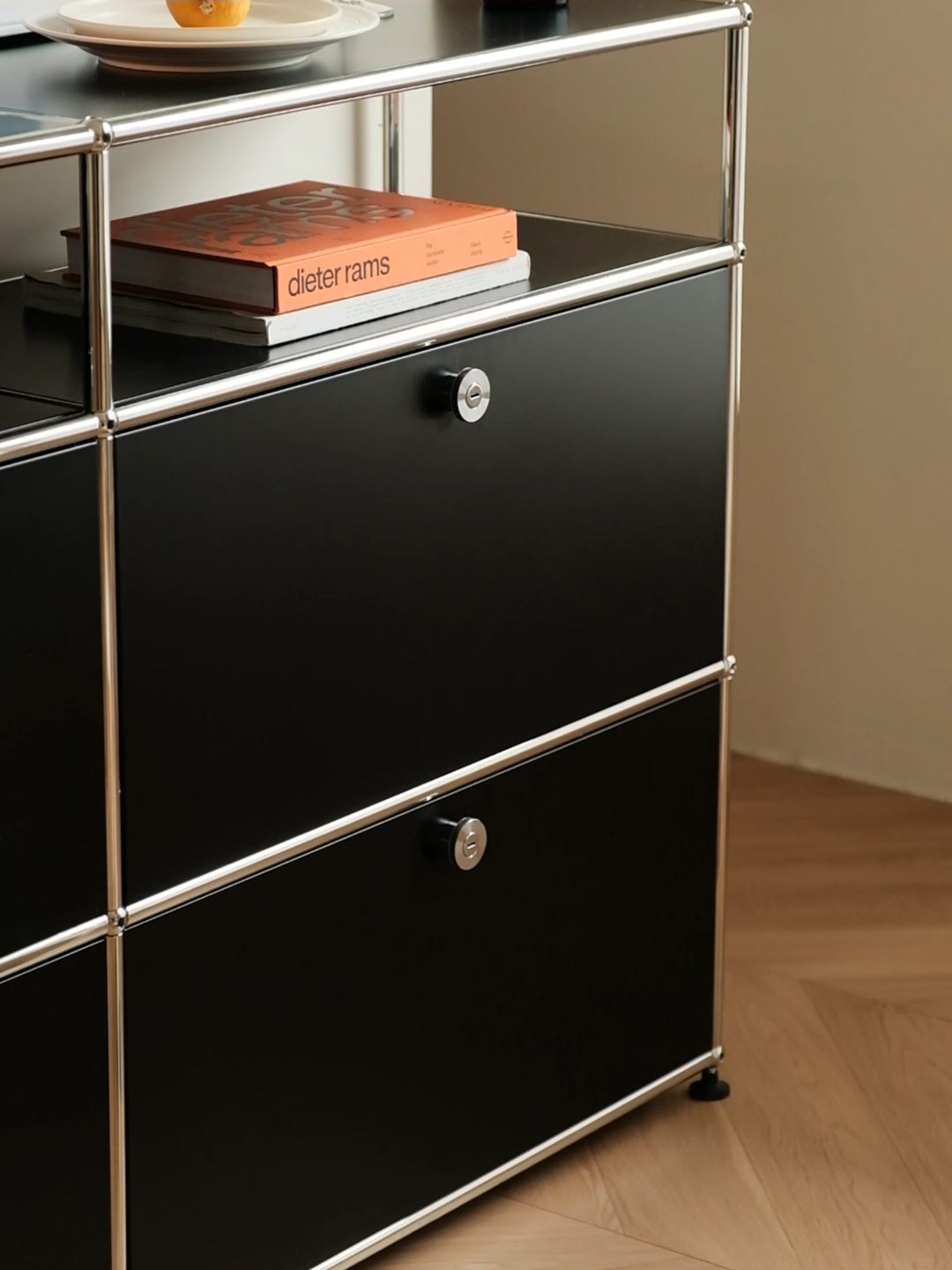 Pure Black Double-layer inverted-door modular cabinet