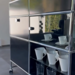 纯黑色双层滑轮组合收纳柜