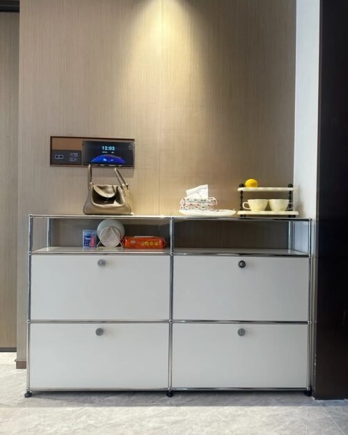 【Assemy】Pure White Double-layer inverted-door fixed-stand modular storage cabinet