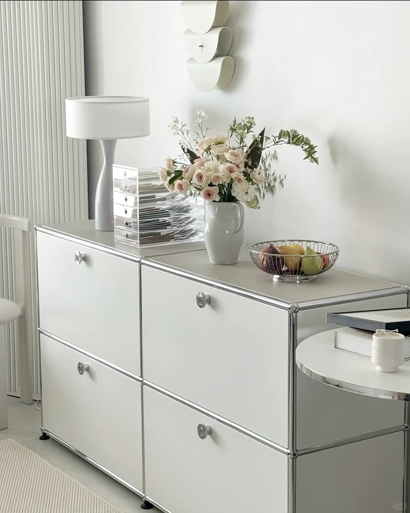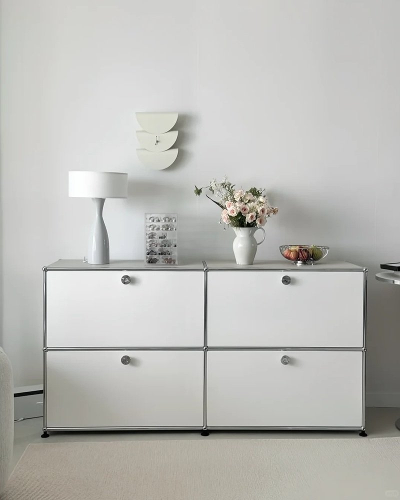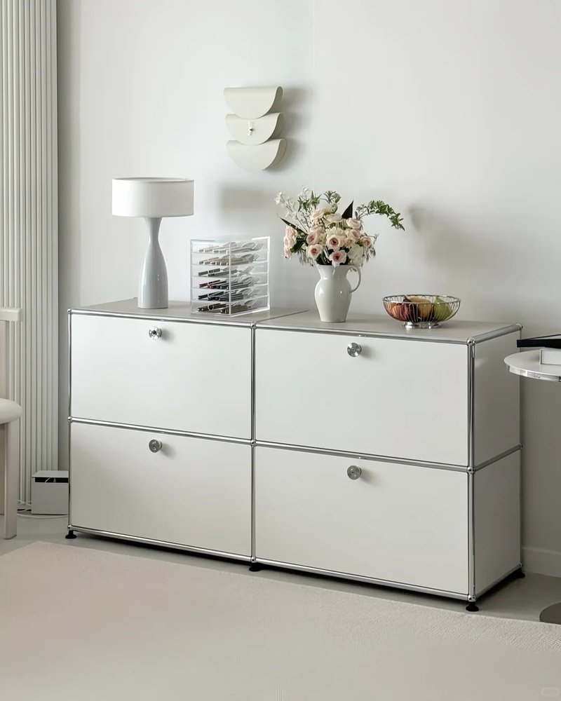 【Assemy】Pure White Double-layer inverted-door fixed-stand modular storage cabinet